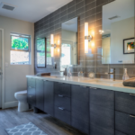 This style lends itself to the more classic shaker or craftsman style. Simple, old world craftsmanship are words used to describe this custom style. The doors and drawer fronts are inset flush with the face frame with a minimal 1/8″ space between the inside edge of the face frame and the outside edge of the door/drawer. Although many door styles are used in this type of construction; Shaker, Camden, Laguna and Cascade are the most popular.